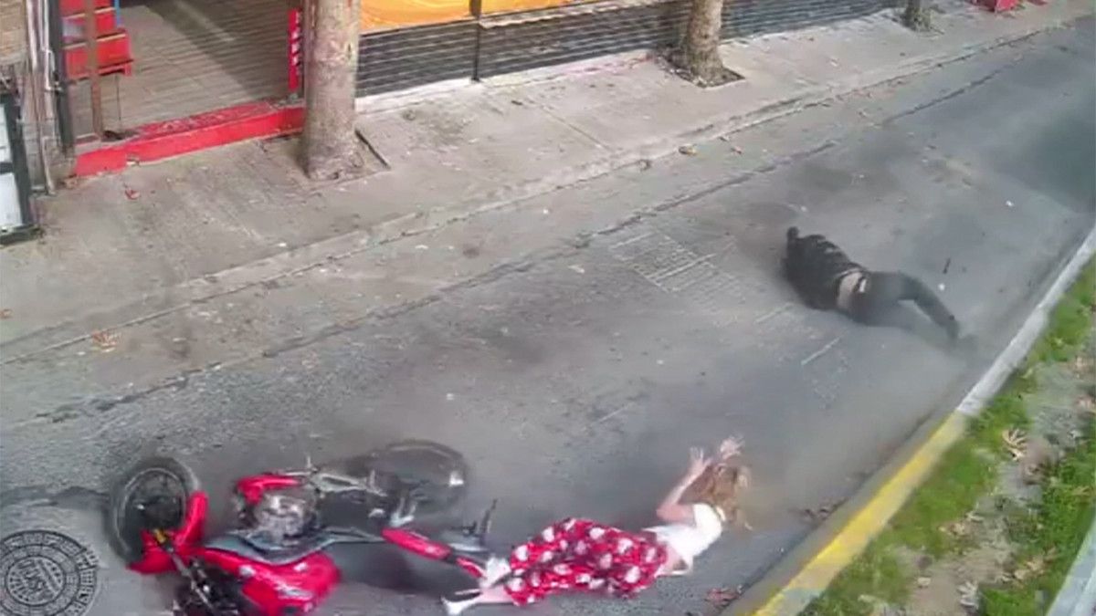 Güvenlik kamerasına yansıyan görüntülerde motosiklet kullanan abinin direksiyon hakimiyetini kaybettiği ve kız kardeşiyle beraber yere düşerek metrelerce sürüklendiği anlar yer aldı.