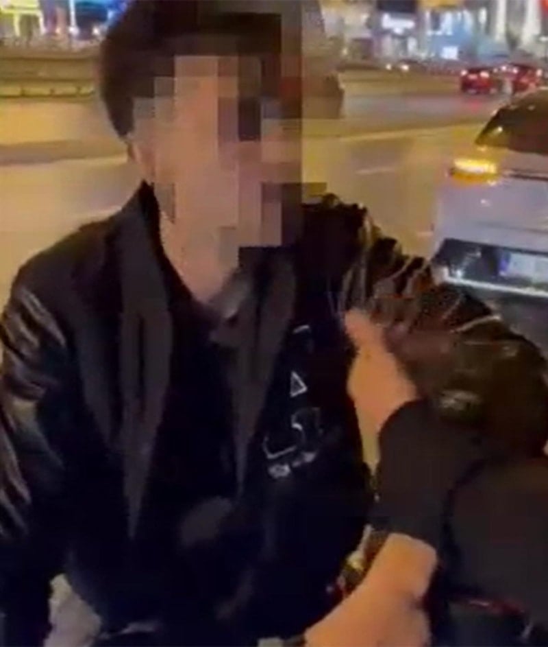 Kaza anı ve sürücülerin tartışmaları çevredekiler tarafından cep telefonu ile kaydedildi.