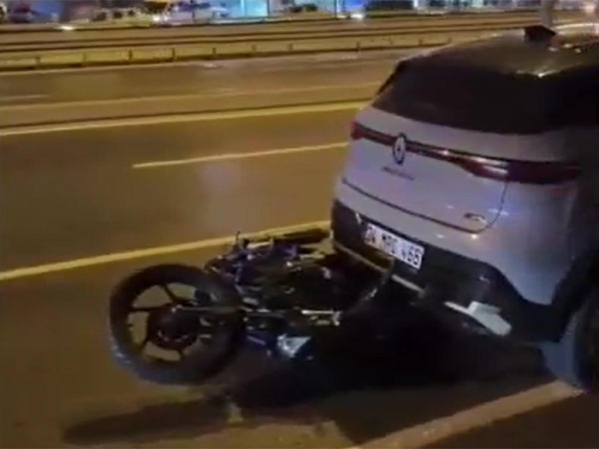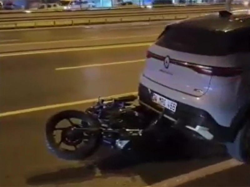 İstanbul'un Avcılar ilçesi D-100 kara yolu Saadetdere Mahallesi geçişinde sürücüsünün hakimiyetini kaybettiği motosiklet, yol kenarında duran otomobile çarptı.
