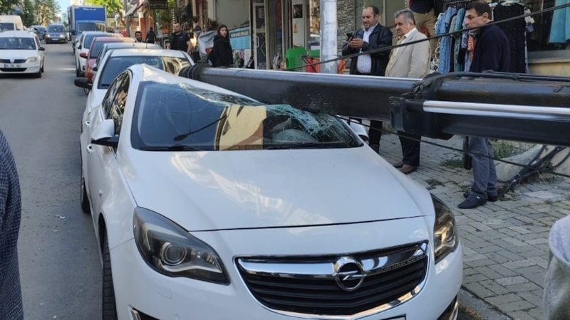 Vincin bir kısmı park halindeki otomobilin üstüne düştü.