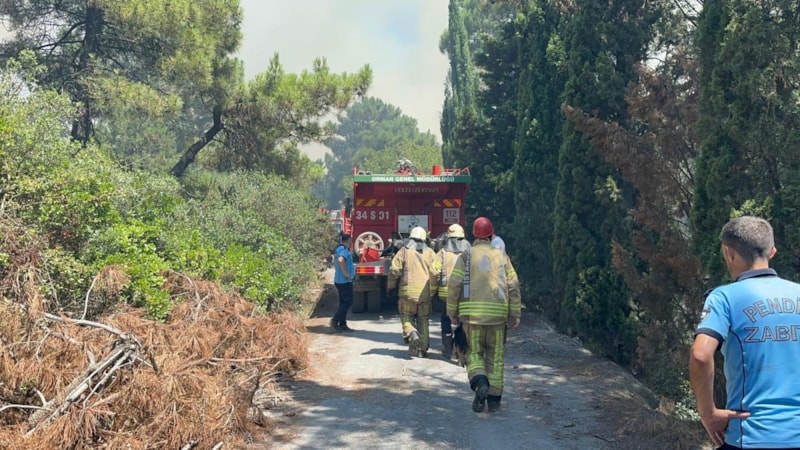 Orman Genel Müdürlüğünün resmi sosyal medya hesabından yapılan paylaşımda, "İstanbul Pendik Aydos Ormanları'nda meydana gelen orman yangınına havadan ve karadan müdahale ediyoruz. Yeşil Vatan için mücadelemiz devam ediyor." ifadeleri kullanıldı.