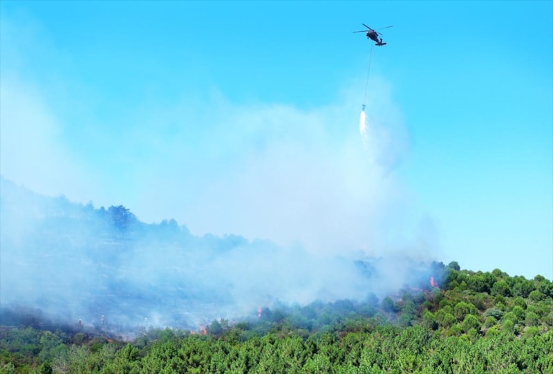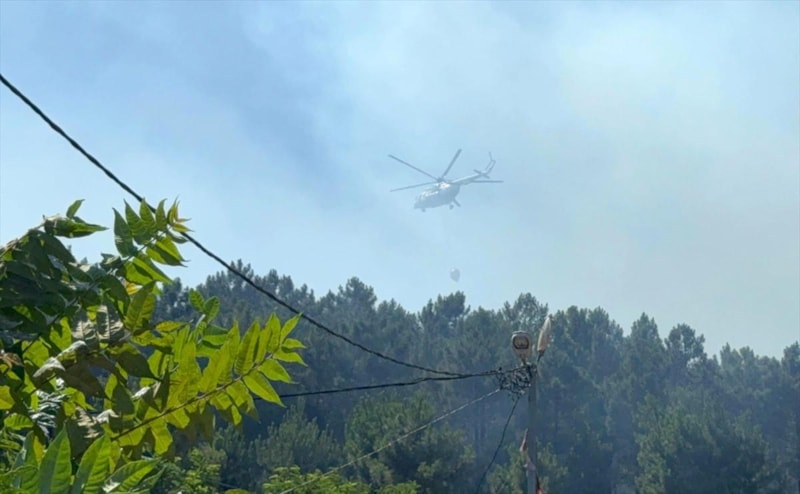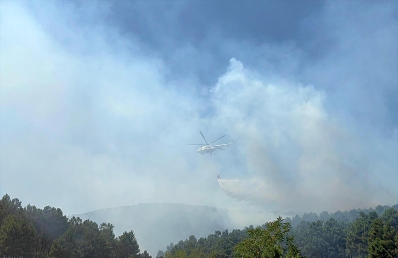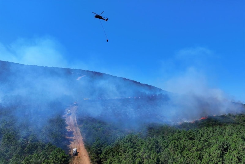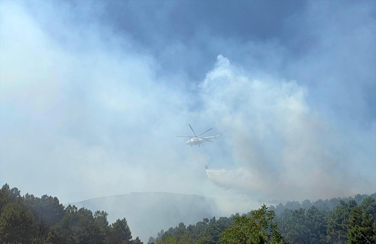 Orman Bölge Müdürlüğü ile Türk Silahlı Kuvvetleri'ne ait yangın söndürme helikopterleri de çalışmalara destek verirken ekiplerin yangını söndürme çalışmaları sürüyor.