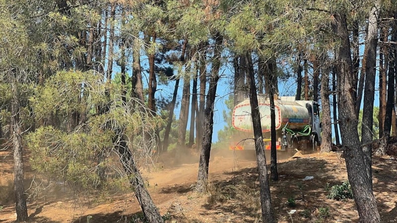 Orman yangını kontrol altına alınmış olup, ekiplerin soğutma çalışması devam etmektedir.