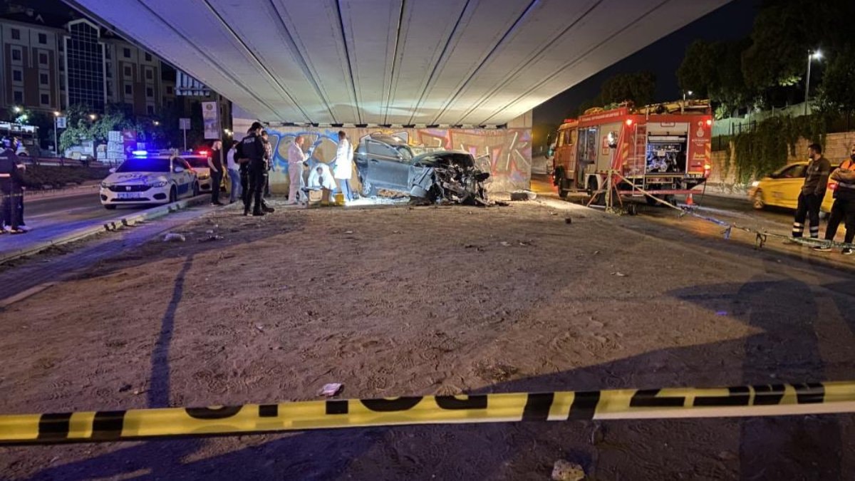 İstanbul'un Bahçelievler ilçesi Mehmet Akif Caddesi üzerinde seyir halinde olan otomobil, sürücüsü henüz bilinmeyen bir nedenle direksiyon hakimiyetini kaybedince önce refüje çıktı ardından da üzerinden tramvayın geçtiği köprü altındaki duvara çarptı.