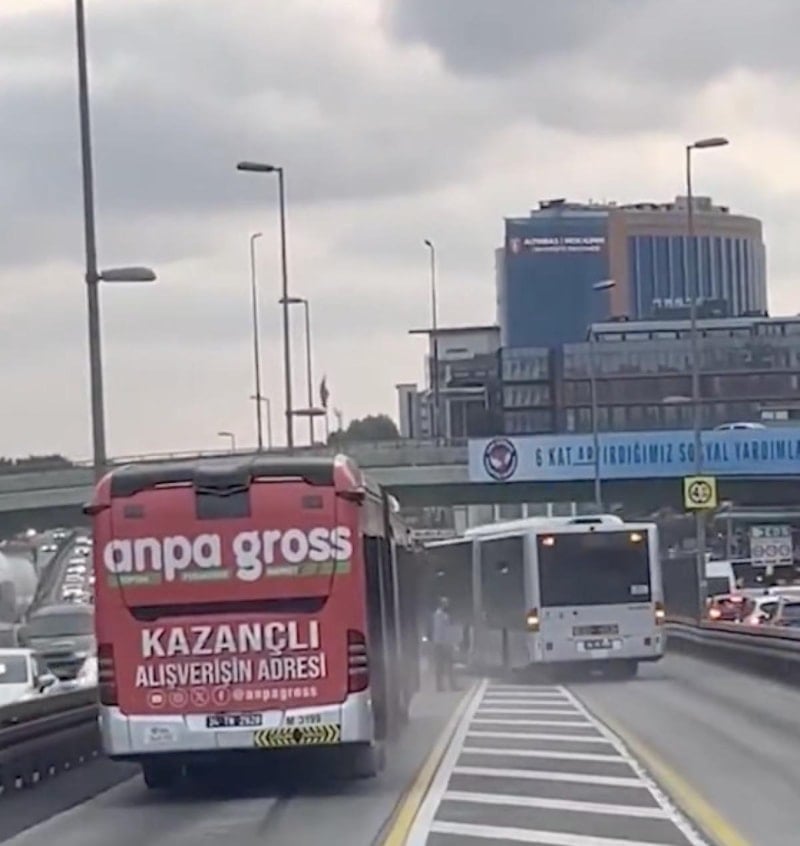 Beylikdüzü istikametine giden metrobüsün motor kısmından İncirli Durağı yakınlarında duman yükselmeye başlayınca panik yaşandı.