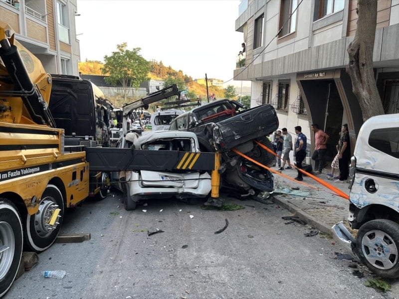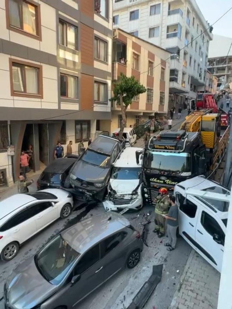 Vinç, sokakta park halindeki 23 araca çarptıktan sonra durabildi.