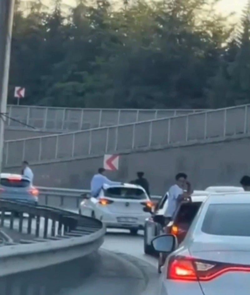 İstanbul'un Bayrampaşa ilçesi Hal Yolu'nda geçtiğimiz günlerde bir grup aracın oluşturduğu düğün konvoyunda bazı kişiler kendilerini araçların camlarından sarkıttı.