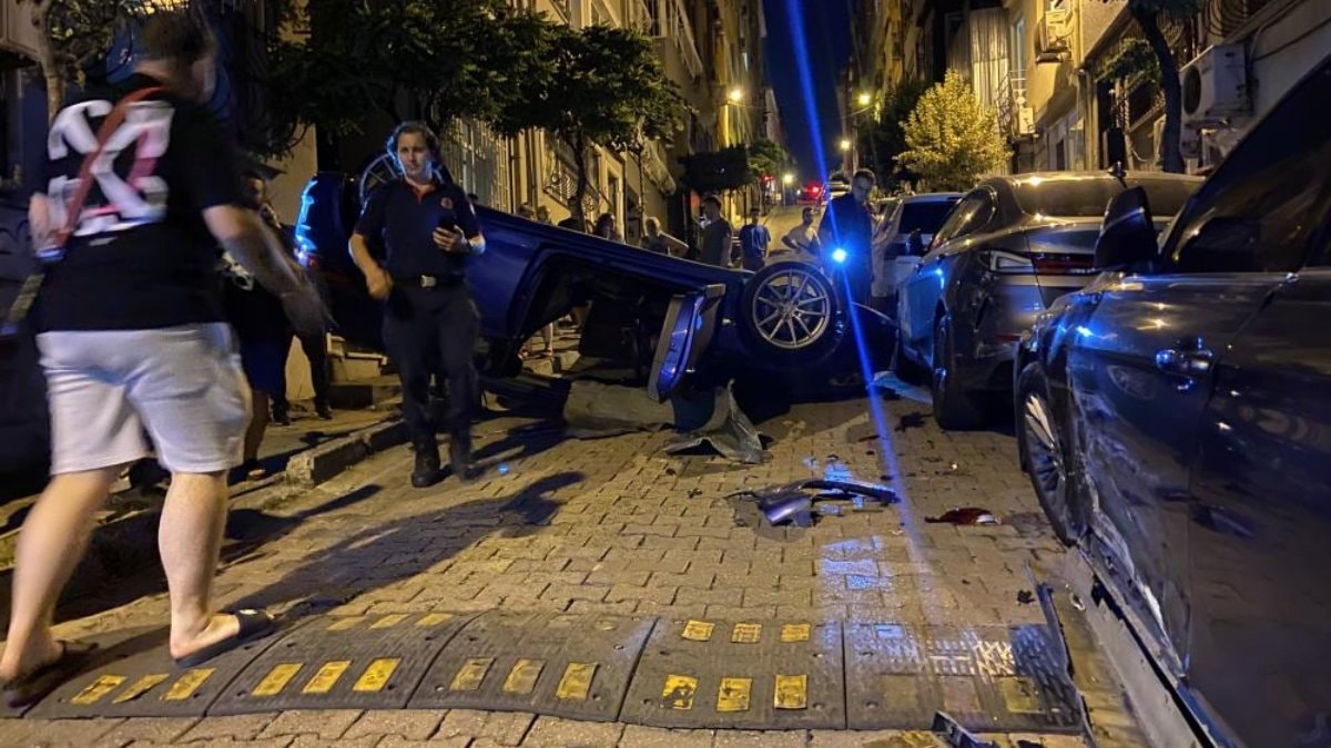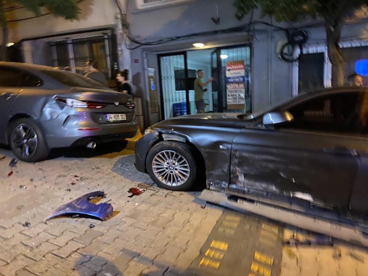 İstanbul'un Beşiktaş ilçesi Muradiye Mahallesi'nde sürücüsünün direksiyon hakimiyetini kaybettiği otomobil, park halindeki 2 araca çarparak takla attı.
