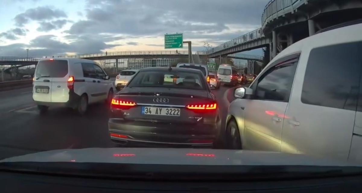 Öndeki sürücünün durmaması üzerine emniyet şeridi ihlali yapan otomobil, üst üste üç kez kasıtlı şekilde çarparak araca hasar verdi.