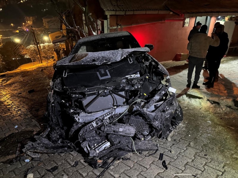 İstanbul'un Beykoz ilçesi Rüzgarlıbahçe Mahallesi'nde yokuş aşağı ilerleyen otomobil, buzlu yolda kontrolden çıktı.