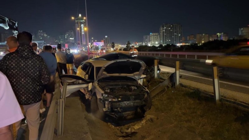 İstanbul Beylikdüzü'nde makas atarak ilerleyen otomobil kontrolden çıkarak başka bir araca çarptı. Çarpışmanın etkisiyle iki araç da yol ayrımı arasındaki boşluğa düştü.