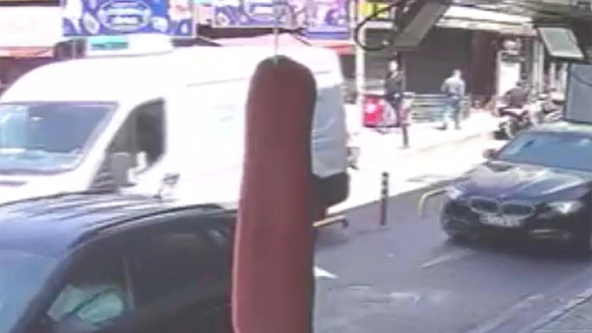 Gerçekleşen kaza anı cadde üzerinde bulunan bir iş yerinin güvenlik kamerasına yansıdı.
