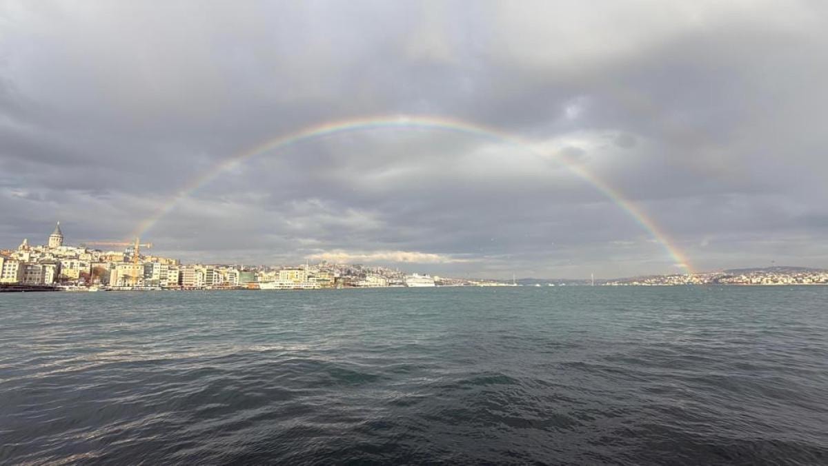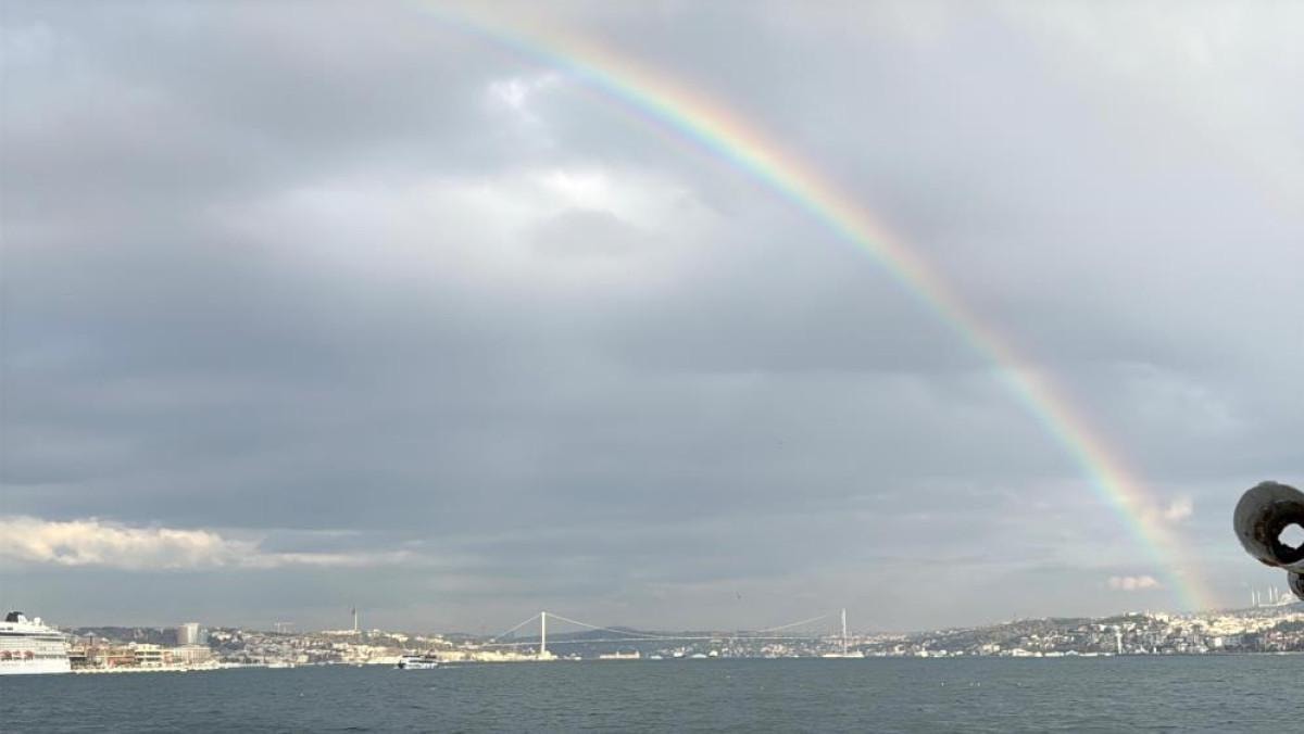 İstanbul Boğazı’nda hafif yağışın ardından gökkuşağı ortaya çıktı.