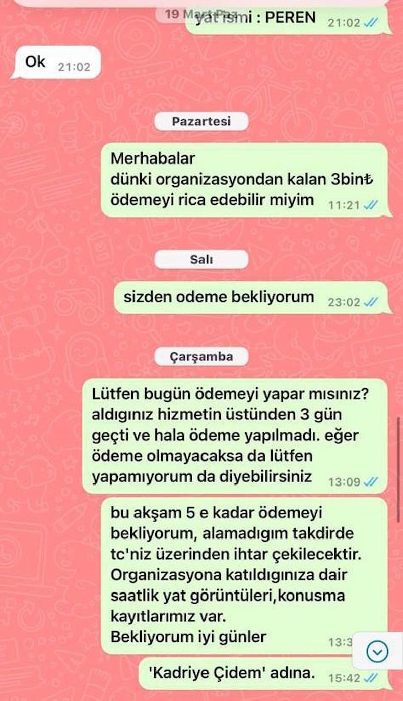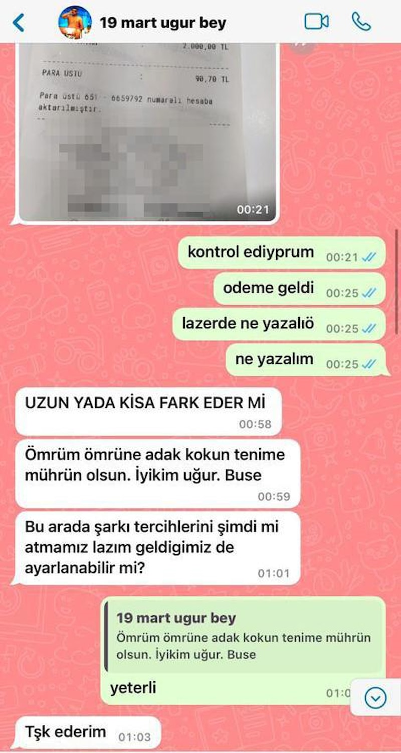 Olayın ardından firma sahibi Nusret Can Kazancı, çift ile iletişime geçti. Ancak çift Kazancı’yı oyalayarak geri kalan 3 bin lirayı ödemedi. Haftalardır Kazancı’yı oyalayan Uğur K. telefonlara ve mesajlara cevap vermezken, K.Ç. ise “Erkek arkadaşımdan ayrıldım, beni aramayın” diyerek parayı ödemedi.