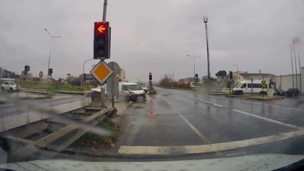 İstanbul'un Büyükçekmece ilçesi Celaliye Mahallesi'nde sürücüsünün kırmızı ışıkta durmadığı hafif ticari araç, bu sırada karşı yönde yeşil ışığın yanmasının ardından ilerleyen otomobile çarptı.