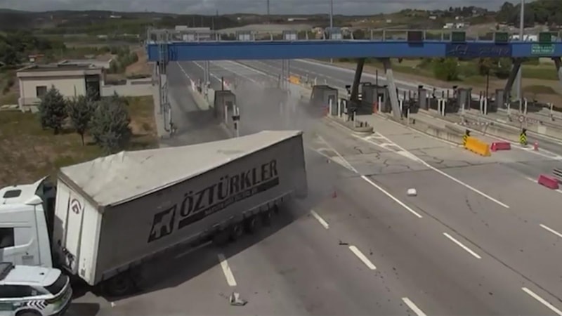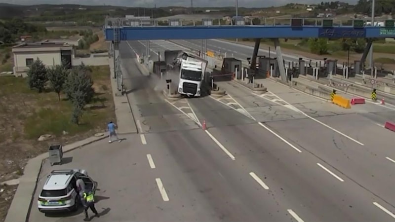 İstanbul'un Çekmeköy ilçesi Kuzey Marmara Otoyolu gişelerinde ismi öğrenilemeyen sürücünün idaresindeki tır, önce bariyerlere sonra da görevli jandarma aracı ile bu sırada işlem yaptıran sürücüye çarptı.