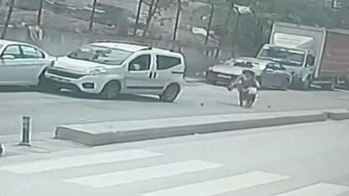 Kaza anı bölgedeki bir iş yerinin güvenlik kamerası tarafından kaydedildi.