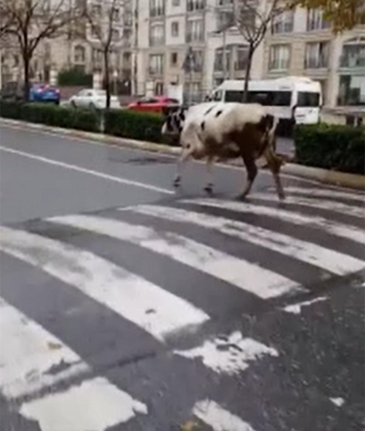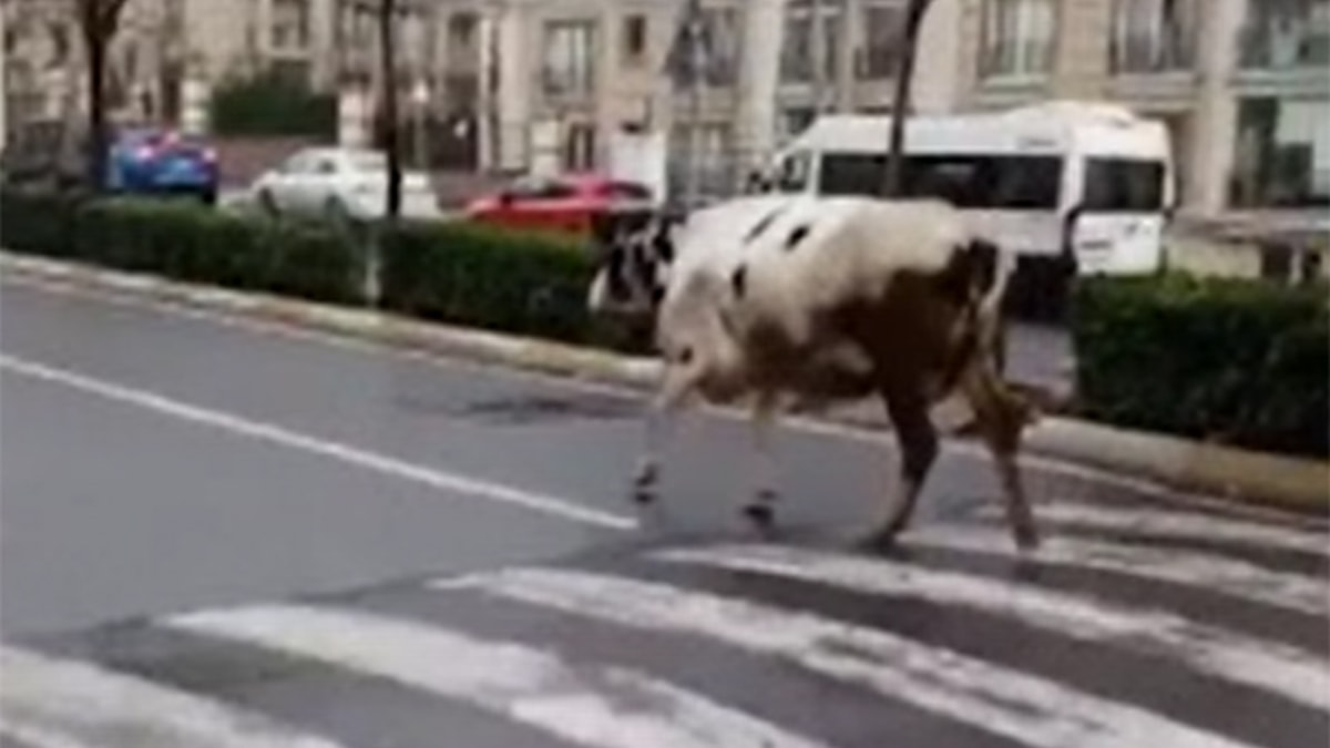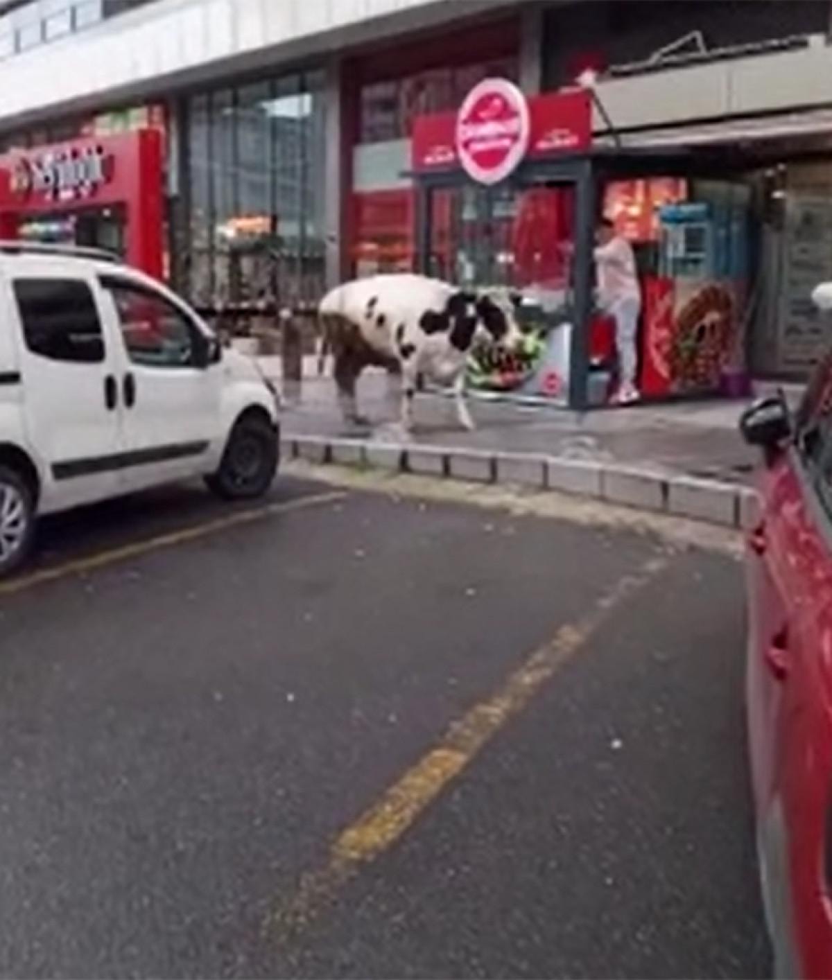 İstanbul'un Esenyurt ilçesi Barbaros Hayrettin Paşa Mahallesi'nde sahibinin elinden kaçan inek dolaşmaya başladı.