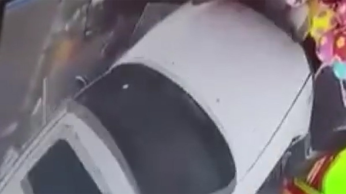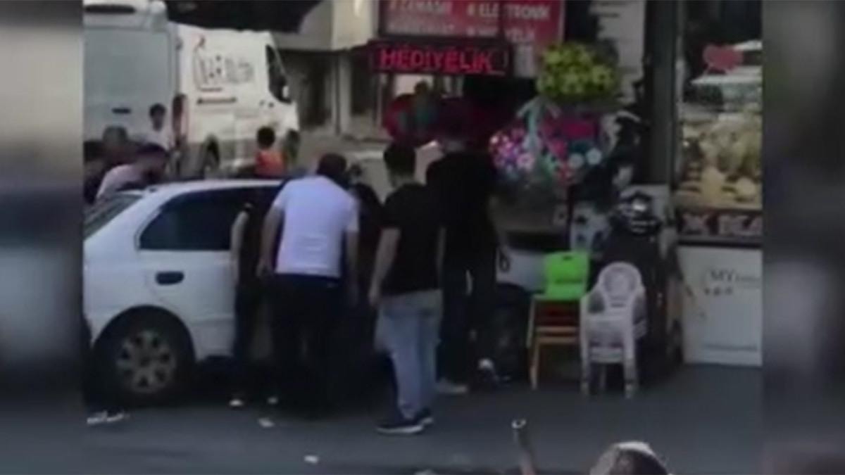 O esnada küçük çocuğu ile beraber kapının önündeki tezgaha bakan bir vatandaş ise kazadan kıl payı kurtuldu.