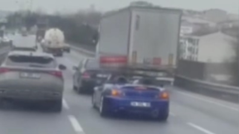 İstanbul'un Esenyurt ilçesi Haramidere bağlantı yolu üzerinde 25 Ocak günü makas atarak trafikte seyreden sürücüyü başka bir sürücü cep telefonu kamerasıyla görüntüledi.