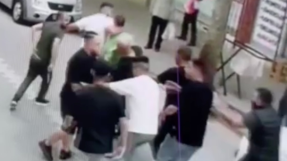 Yaşanan kavga çevredeki bir iş yerinin güvenlik kamerasınca saniye saniye görüntülendi.
