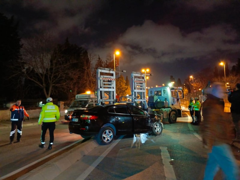 İstanbul'un Eyüpsultan ilçesi Topçular Mahallesi'nde sürücüsünün direksiyon hakimiyetini kaybetmesi nedeniyle otomobil, tramvay yolunda bulunan beton duvara çarptı.