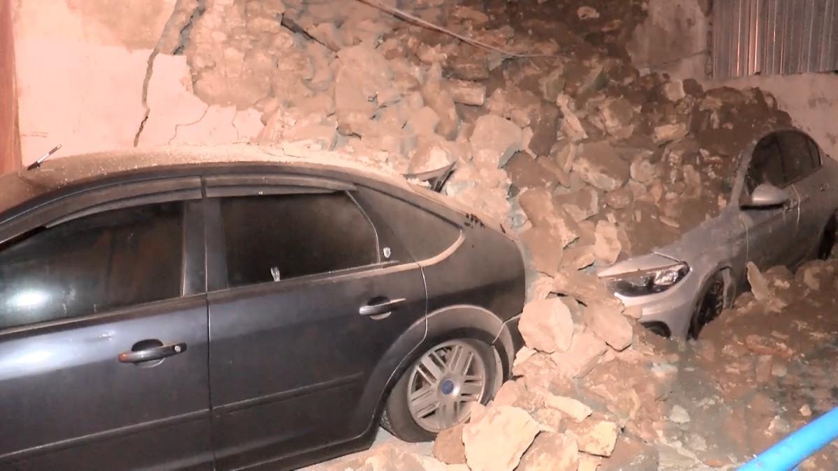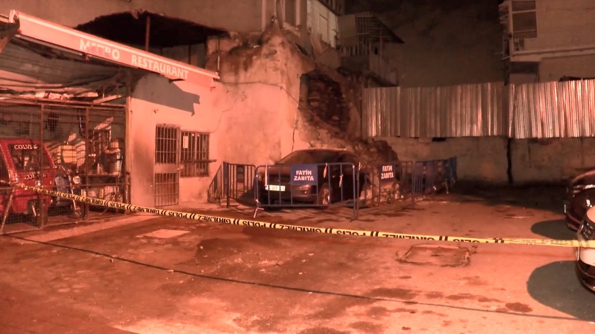 İstanbul'un Fatih ilçesi Nişanca Mahallesi'nde otoparkta park halindeki araçların üzerine duvar çöktü.