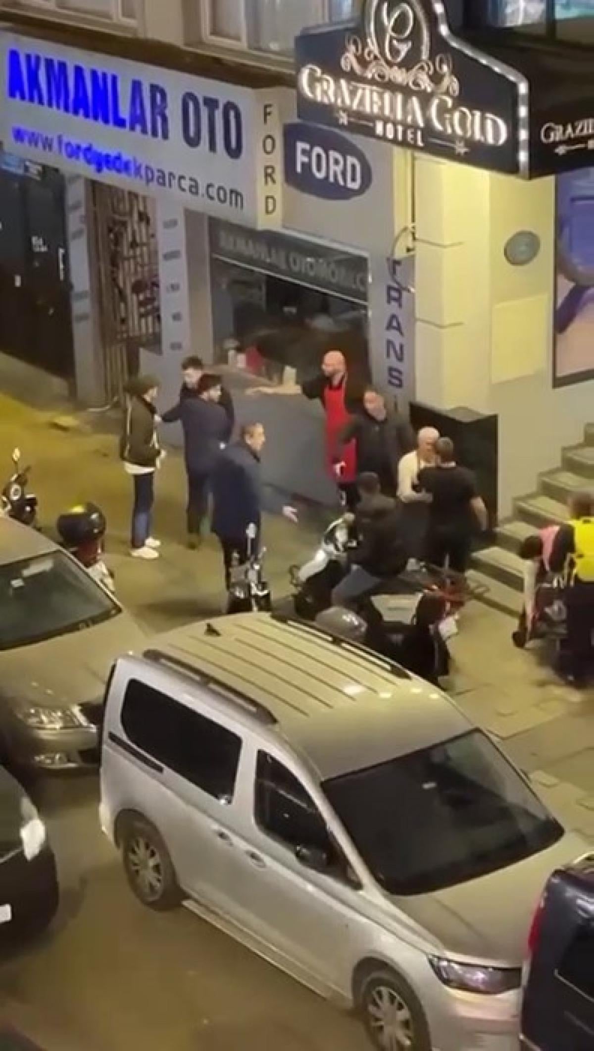 İstanbul'un Fatih ilçesine bağlı Aksaray'da yabancı turistlerin yoğun bulunduğu, otellerin ve alışveriş mağazalarının olduğu Mustafa Kemal Paşa Caddesi'ne paralel uzanan bir sokakta iki gencin kavga ettiği anlar kameraya takıldı.