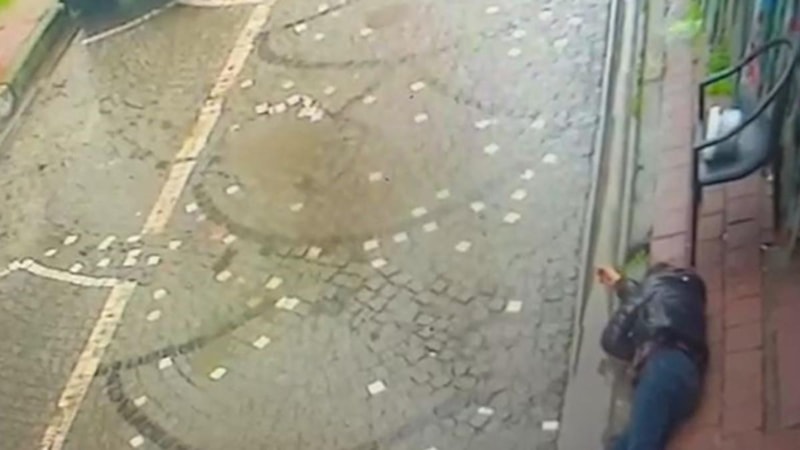 Görüntülerde silahla ağır yaralanan Çali'nin yerde can çekiştiği sırada T.S.K.'nin saldırmaya çalıştığı, bir kişinin engellemeye çalıştığı ve şemsiye ile vurmaya devam devam ettiği görülüyor.