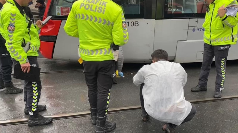 İstanbul Fatih'te T1 Bağcılar-Kabataş hattında sefer yapan tramvayın Laleli-İstanbul Üniversite durağı ile Beyazıt-Kapalıçarşı durağı arasında ismi öğrenilemeyen sürücü, motosikletiyle raylar üzerinde ilerlediği sırada aynı yönde seyreden tramvayı sollamaya çalışırken çarparak altında kaldı.