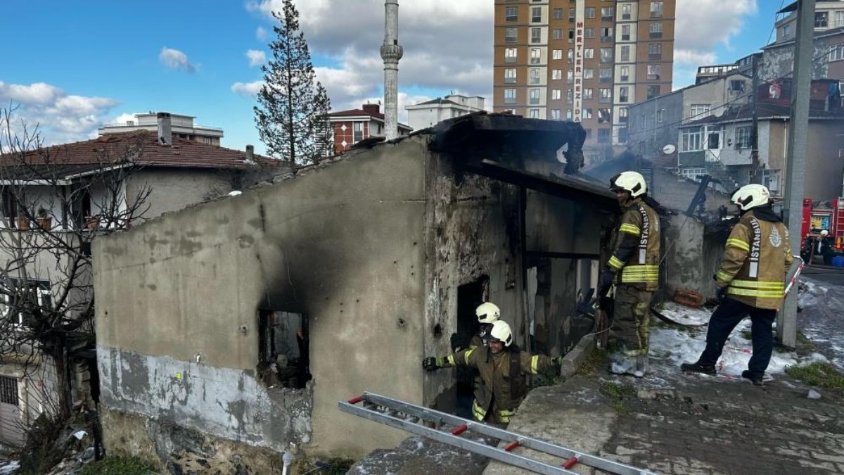 İstanbul'un Gaziosmanaşa ilçesi Yıldıztabya Mahallesi'nde 1 yıl önce toprak kayması sebebiyle boşaltılan boş gecekonduda yangın çıktı.