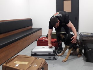 Şüpheli şahsa ait olduğu anlaşılan bir valize narkotik dedektör köpeklerinin aşırı tepki vermesi üzerine valiz, şüpheli yolcunun gözetiminde açıldı.