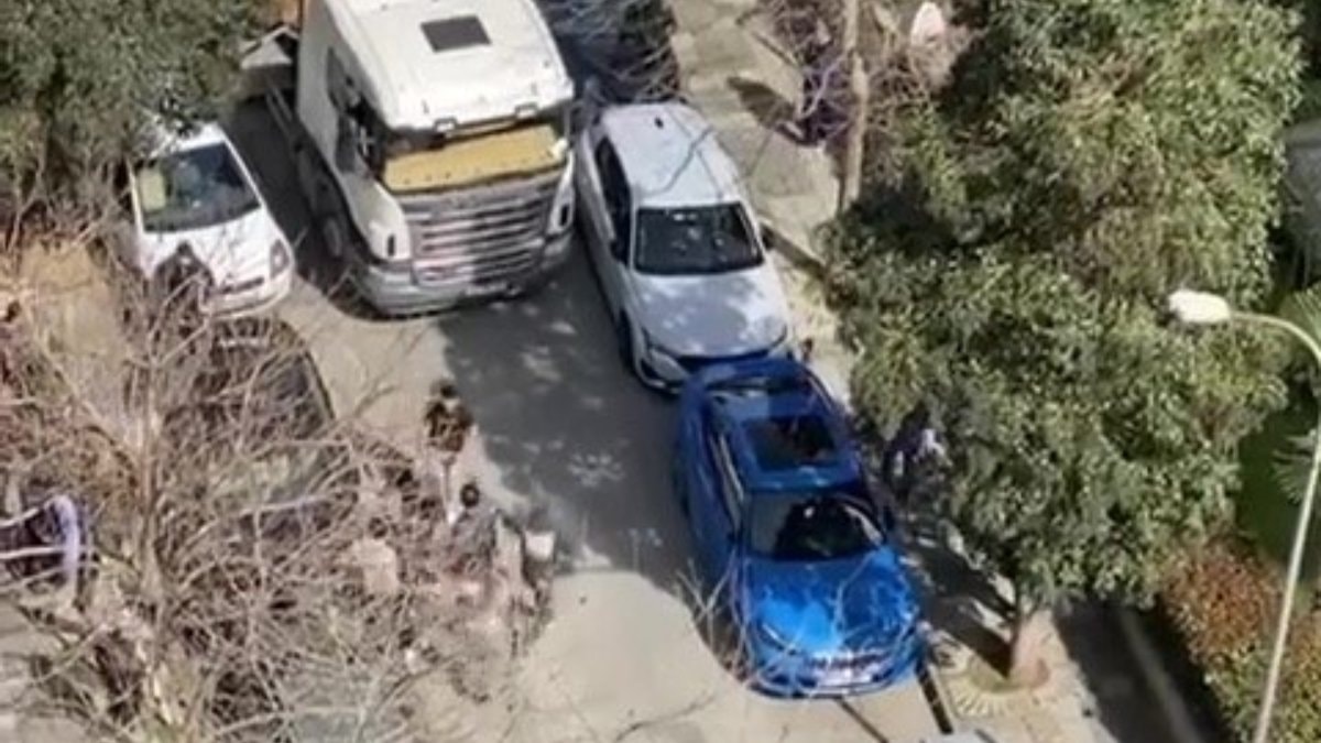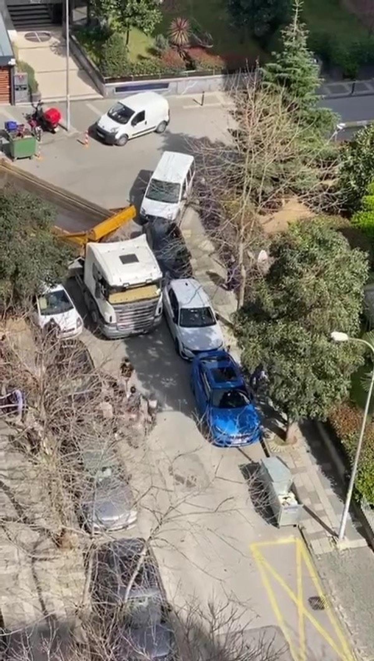 İstanbul'un Kadıköy ilçesi Caddebostan Mahallesi'nde sokakta park halinde bulunan araçlar nedeniyle hafriyat kamyonu dönüş yapamadı.