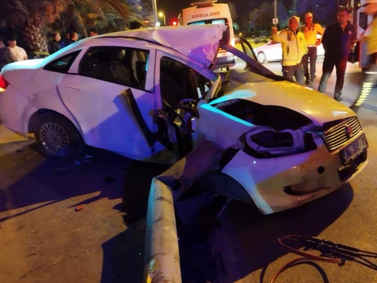 Kontrolden çıkan otomobil direğe vurarak kaldırıma çıktı ve güçlükle durdu.