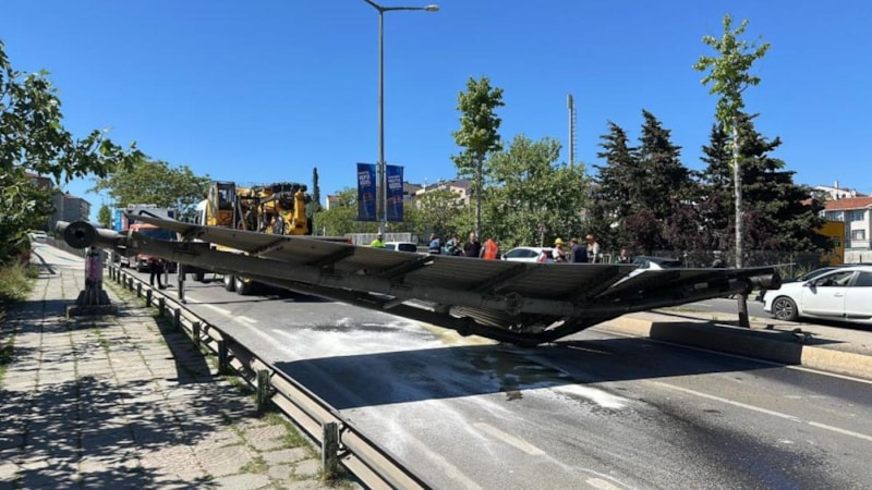 Çarpmanın etkisiyle vinç, adeta şaha kalktı.