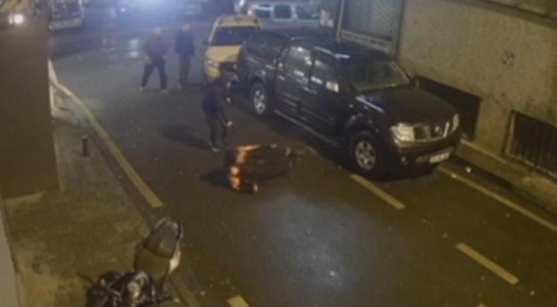 Saldırı anı kameralara anbean yansırken, bacaklarından vurulan adam hastaneye kaldırıldı.