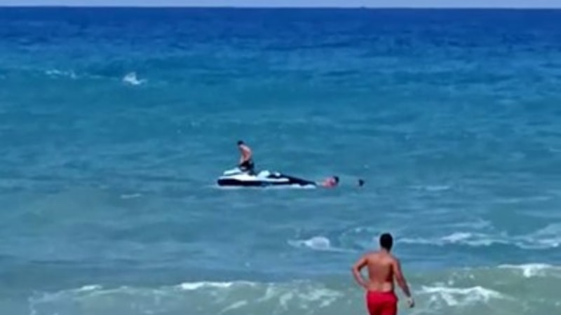 Görüntülerde, cankurtaranların denizde çırpınan kişiye jet ski ile ulaştığı ardından kıyıya çıkardıkları anlar yer aldı.