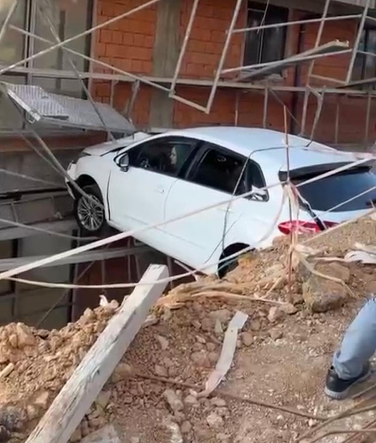 İstanbul'un Kartal ilçesi Hürriyet Mahallesi'nde sürücüsünün direksiyon hakimiyetini kaybettiği otomobil, inşaat boşluğuna düştü.