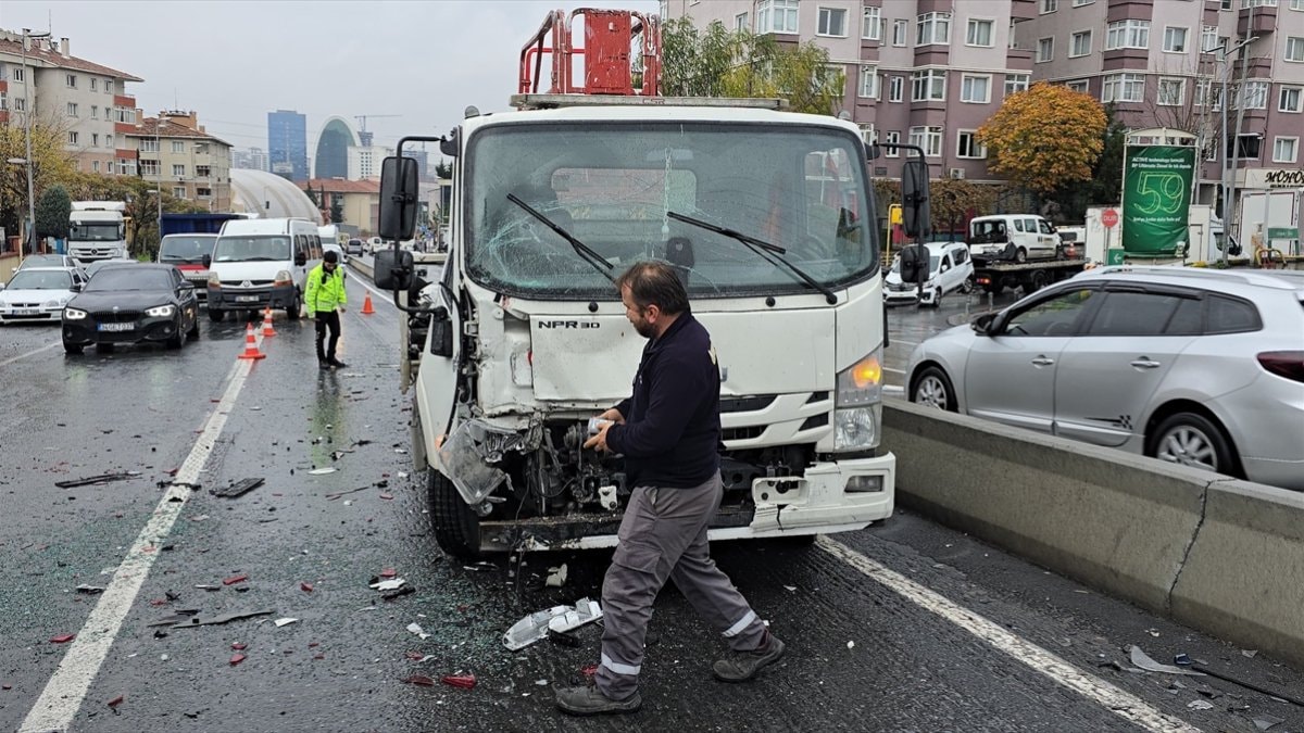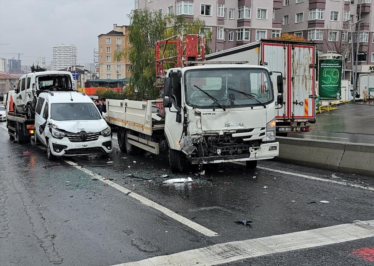 İstanbul'un Küçükçekmece ilçesinde seyreden 3 panelvan ile bir kamyonet, Halkalı Merkez Mahallesi üzerinde çarpıştı.