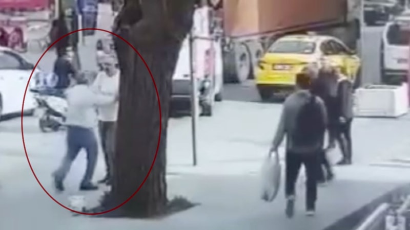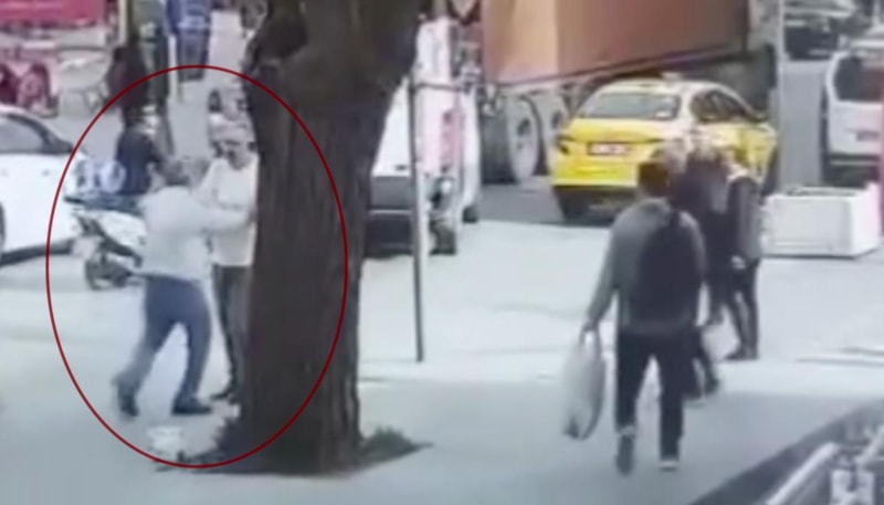 İstanbul Merter'de yaya ile taksi şoförü arasında geçiş hakkı tartışması çıktı. Taksi şoförünün yayayı darbettiği anlar güvenlik kamerasına yansıdı.
