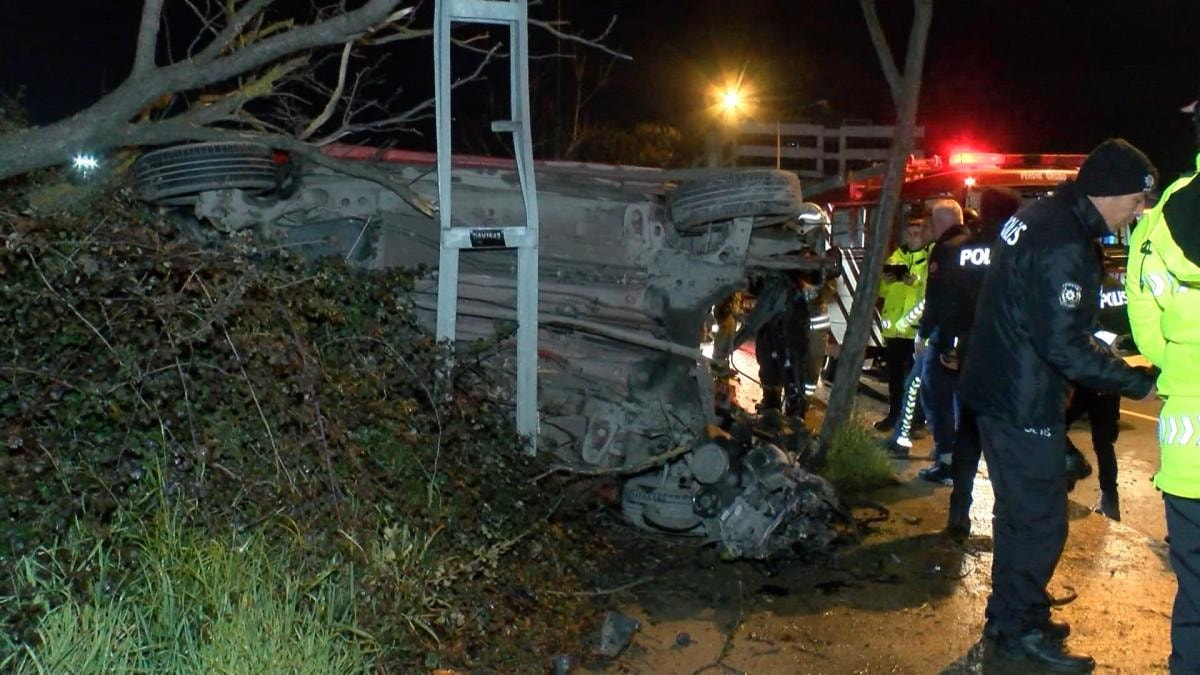 İstanbul'un Pendik ilçesi Kurtköy Mahallesi Ankara Caddesi'nde sürücüsünün direksiyon hakimiyetini kaybettiği otomobil önce yol kenarında bulunan bir ağaca vurarak takla attı, ardından elektrik direğine çarptı.