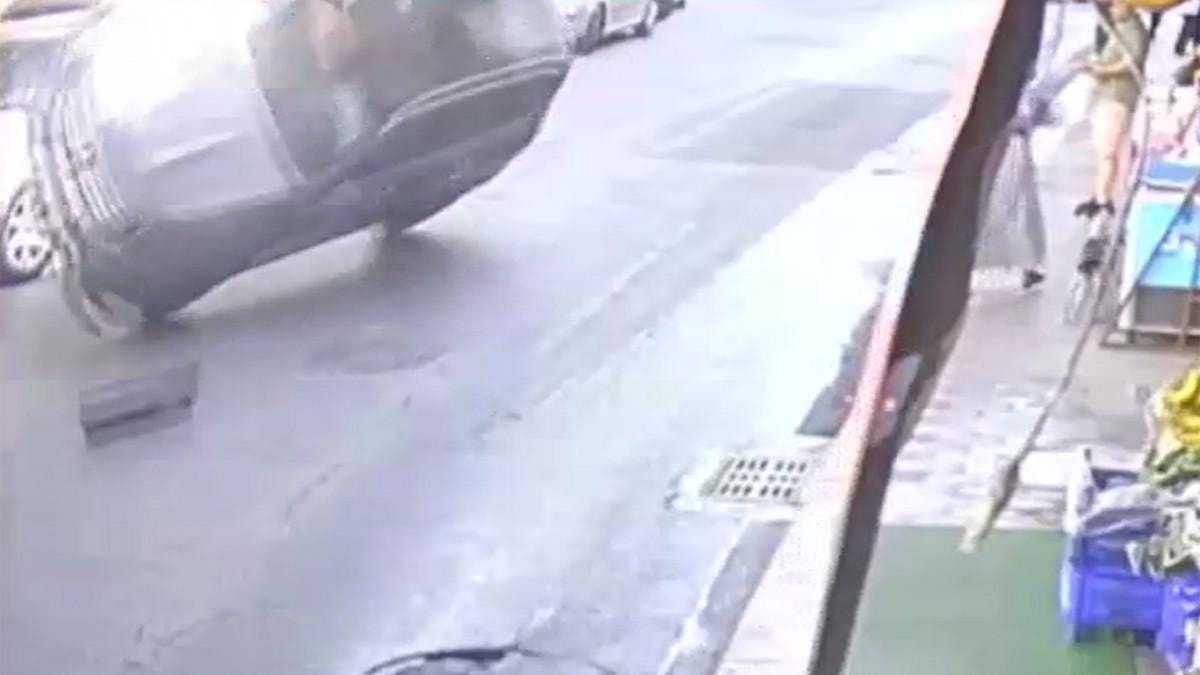 Kaza anı caddedeki iş yerlerinin güvenlik kameraları tarafından kaydedildi.