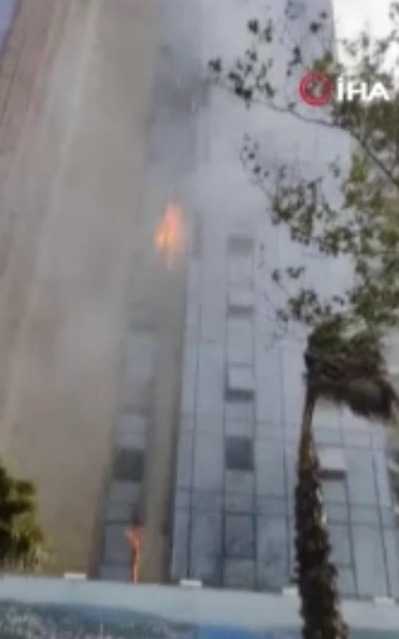 34 yıldır kaba inşaatı devam eden rezidansta, henüz bilinmeyen bir nedenle yangın çıktı.
