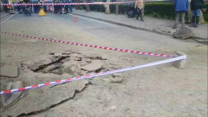 Ekipler tarafından çökme meydana gelen yol trafiğe kapatıldı.
