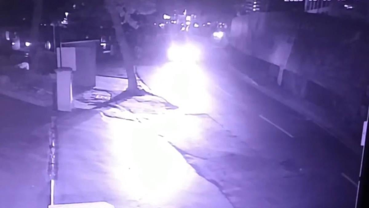 Öte yandan yolun çöktüğü anlar, güvenlik kamerasına yansıdı.