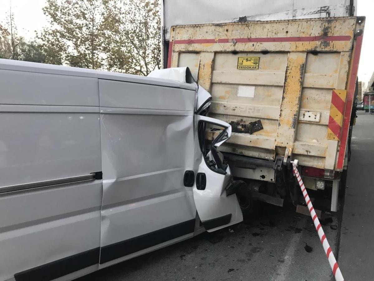 İstanbul'un Şişli ilçesi Piyalepaşa Bulvarı'nda Vedat Kalkan'ın kullandığı panelvan araç, park halindeki kamyona arkadan çarparak saplandı.