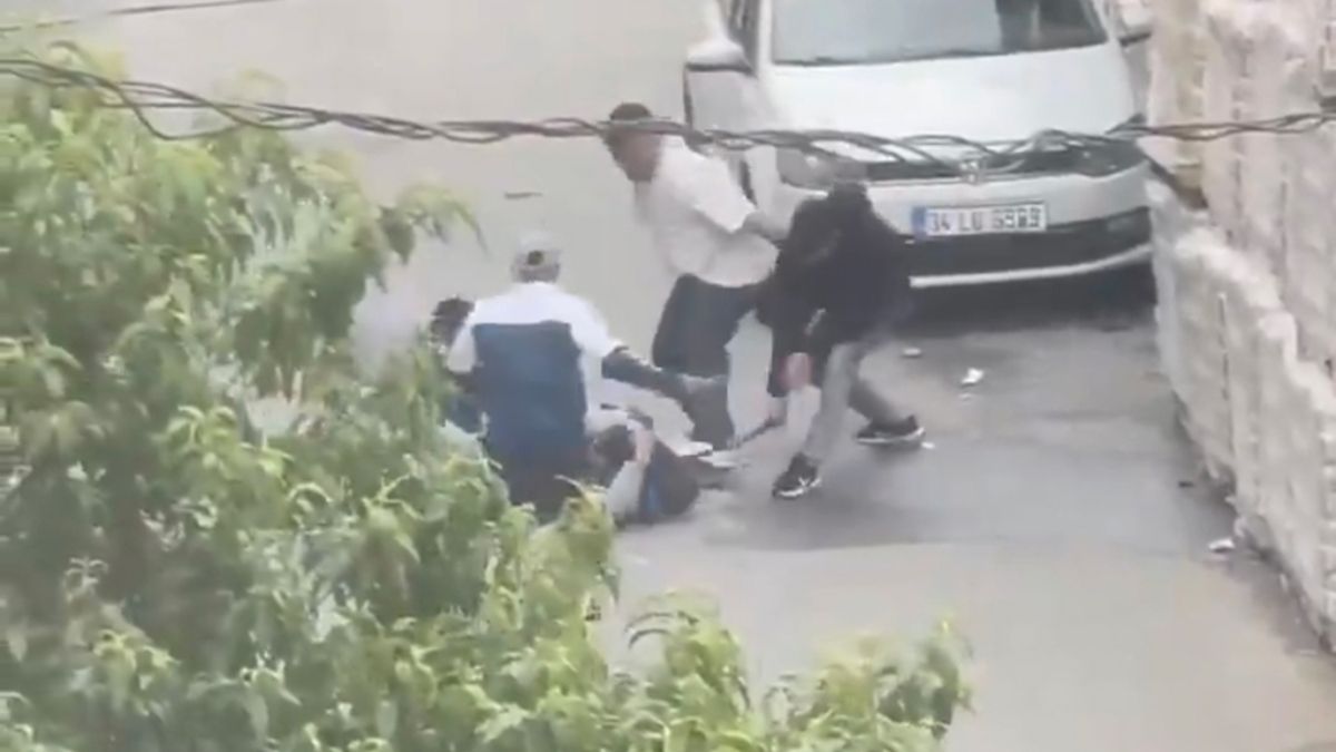 Kavga eden kişilerin birbirlerine taş ve şişe attıkları, bir şüphelinin ise döner bıçağıyla yere düşen kişiye vurduğu görülüyor.