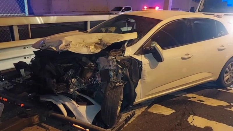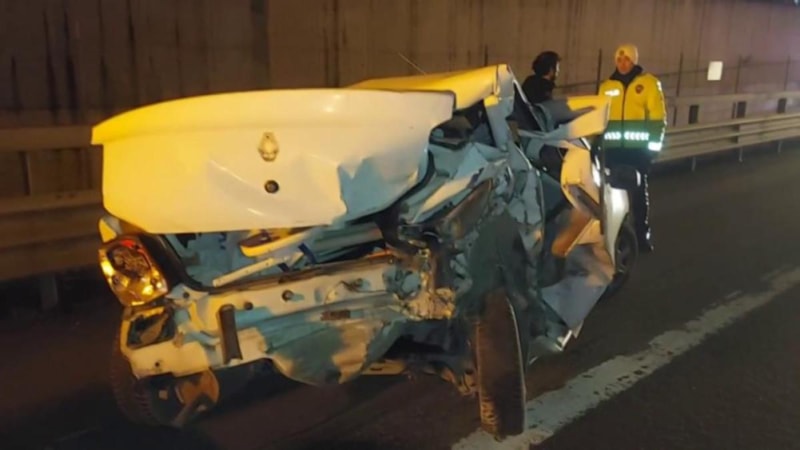 Sultanbeyli ilçesi TEM Otoyolu'nda seyir halinde olan otomobil, karşıya geçmeye çalışan köpeğe çarptı.