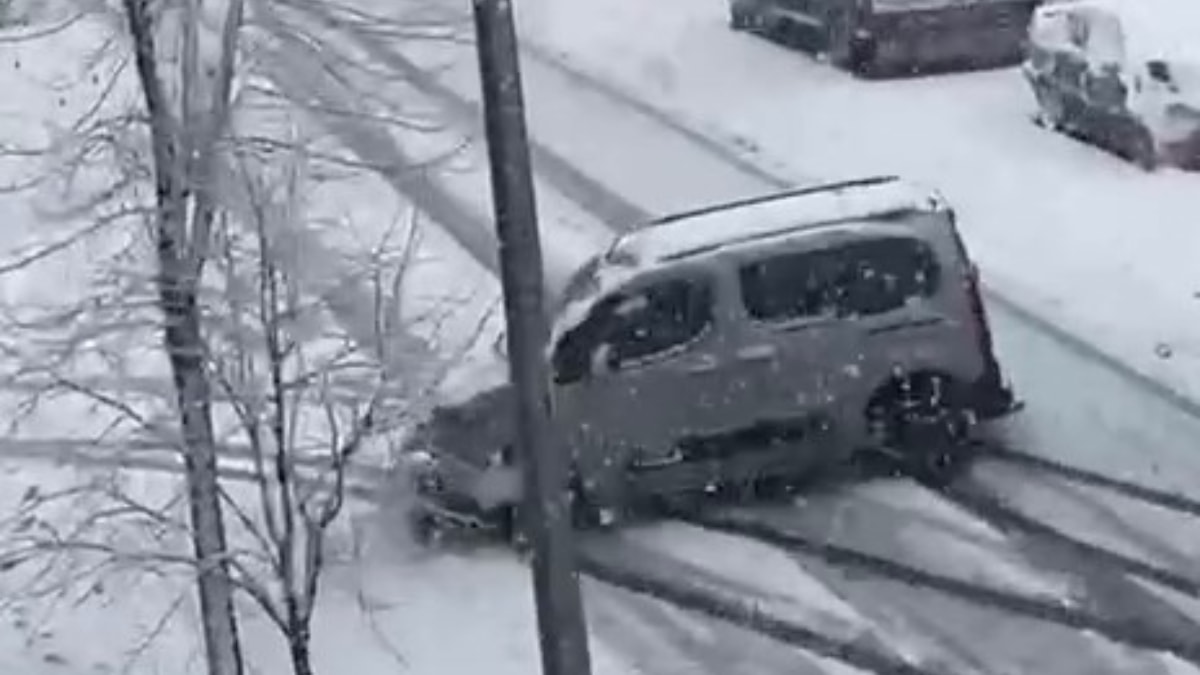 Yokuş olan sokakta sürücülerinin direksiyon hakimiyetini kaybettiği bazı araçların yan döndüğü, bazılarının ise diğer araçlara çarptığı görüldü.