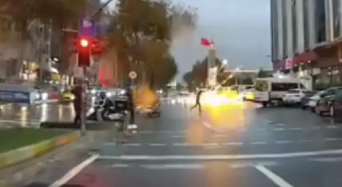 Çevredeki vatandaşların ve olay yerinden geçen motosiklet sürücüsünün yaşadığı panik, cep telefonu kamerasına yansıdı.